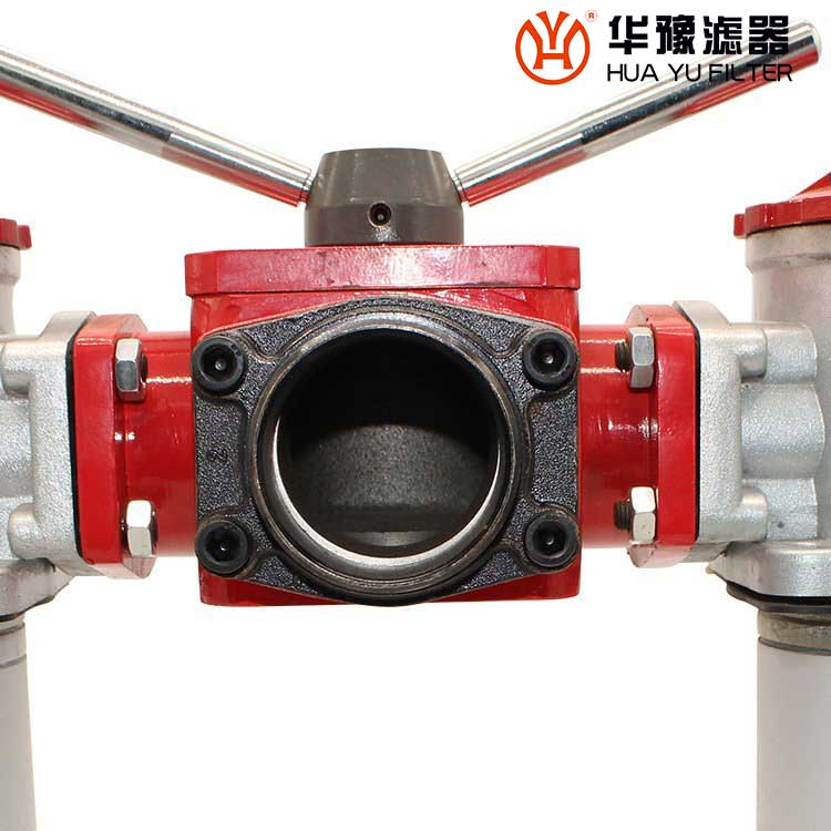 它的工作特點(diǎn)是當(dāng)一只過濾器濾芯堵塞需要更換時(shí),不需要停止主機(jī)工作,只要打開壓力平衡并轉(zhuǎn)動(dòng)換向閥,另一只過濾器即可參加工作,然后更換已堵塞的濾芯。