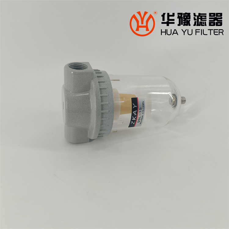 QSL、QSLd (帶保護(hù)罩)系列空氣過濾器一、特點(diǎn):1、結(jié)構(gòu)簡單,應(yīng)用廣泛。2、采用旋風(fēng)葉片分離水分及雜質(zhì)。不銹鋼微孔截留塵埃。3、存水杯采用透明的聚碳酸脂制成,不僅能滿足耐壓要求,并能清晰地觀察積存的水量。4、金屬保護(hù)罩可保護(hù)存水杯免受外力撞擊導(dǎo)致破碎。